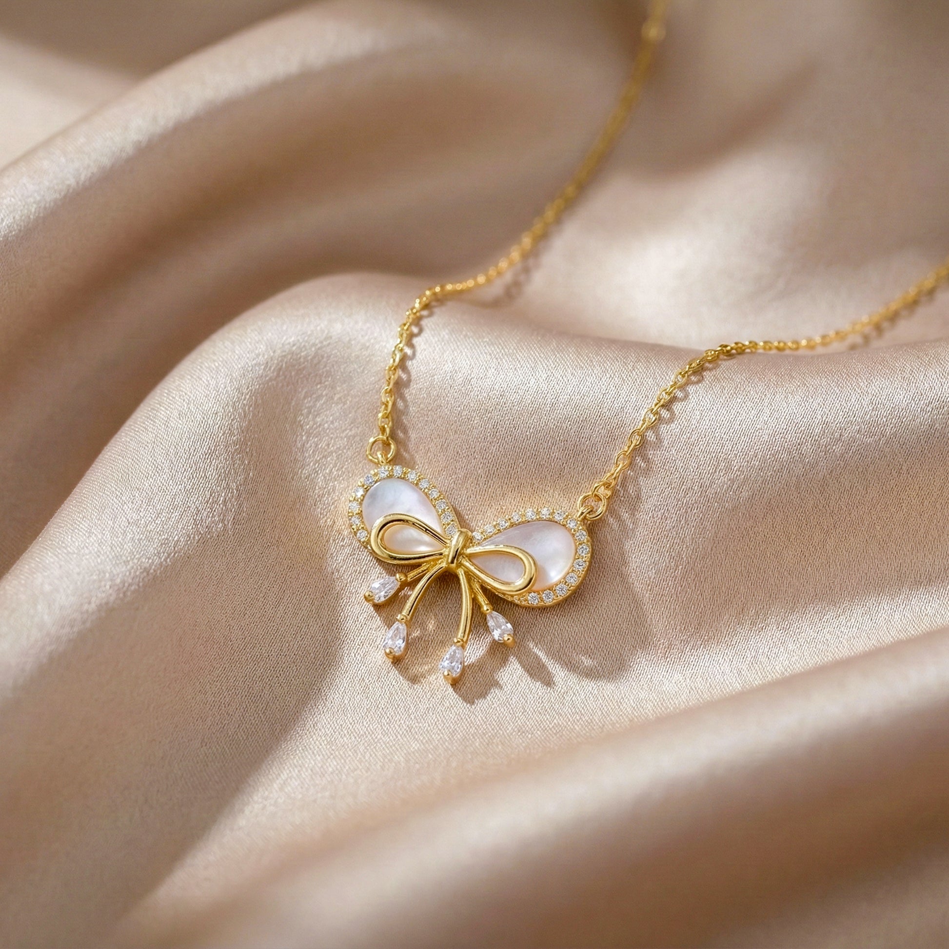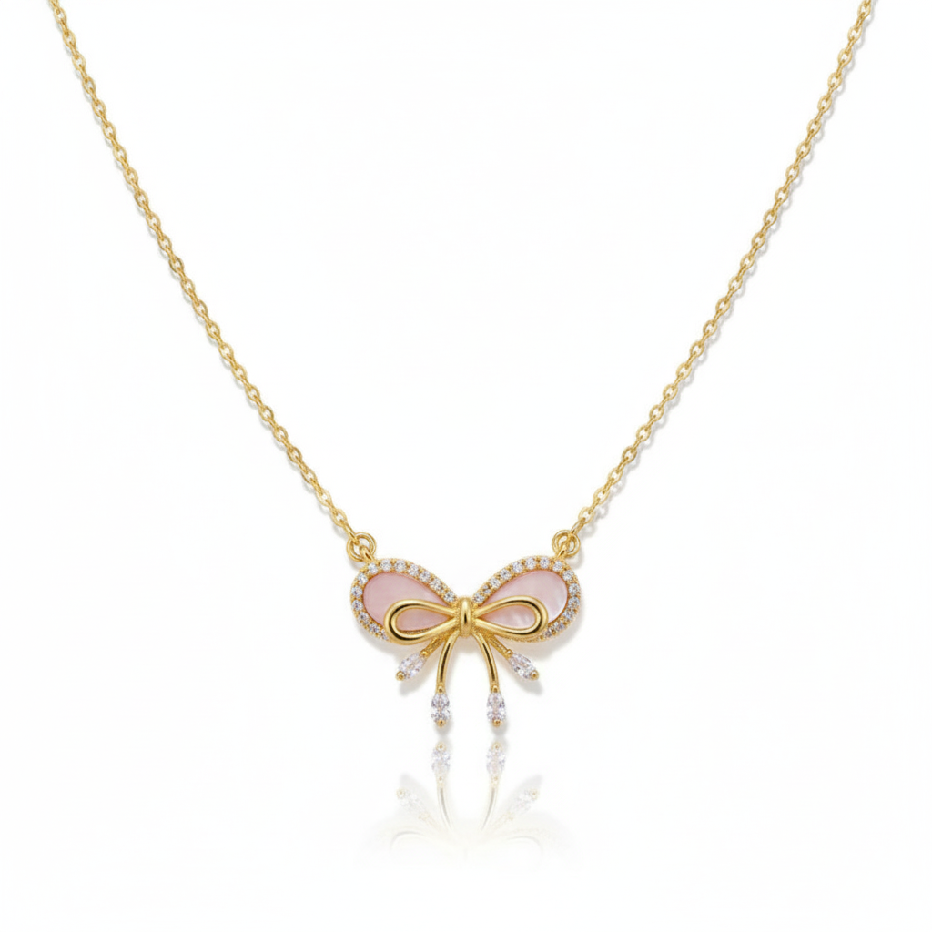 🎀 Celestine Luxe Ribbon Pearl Necklace ~✨🤍