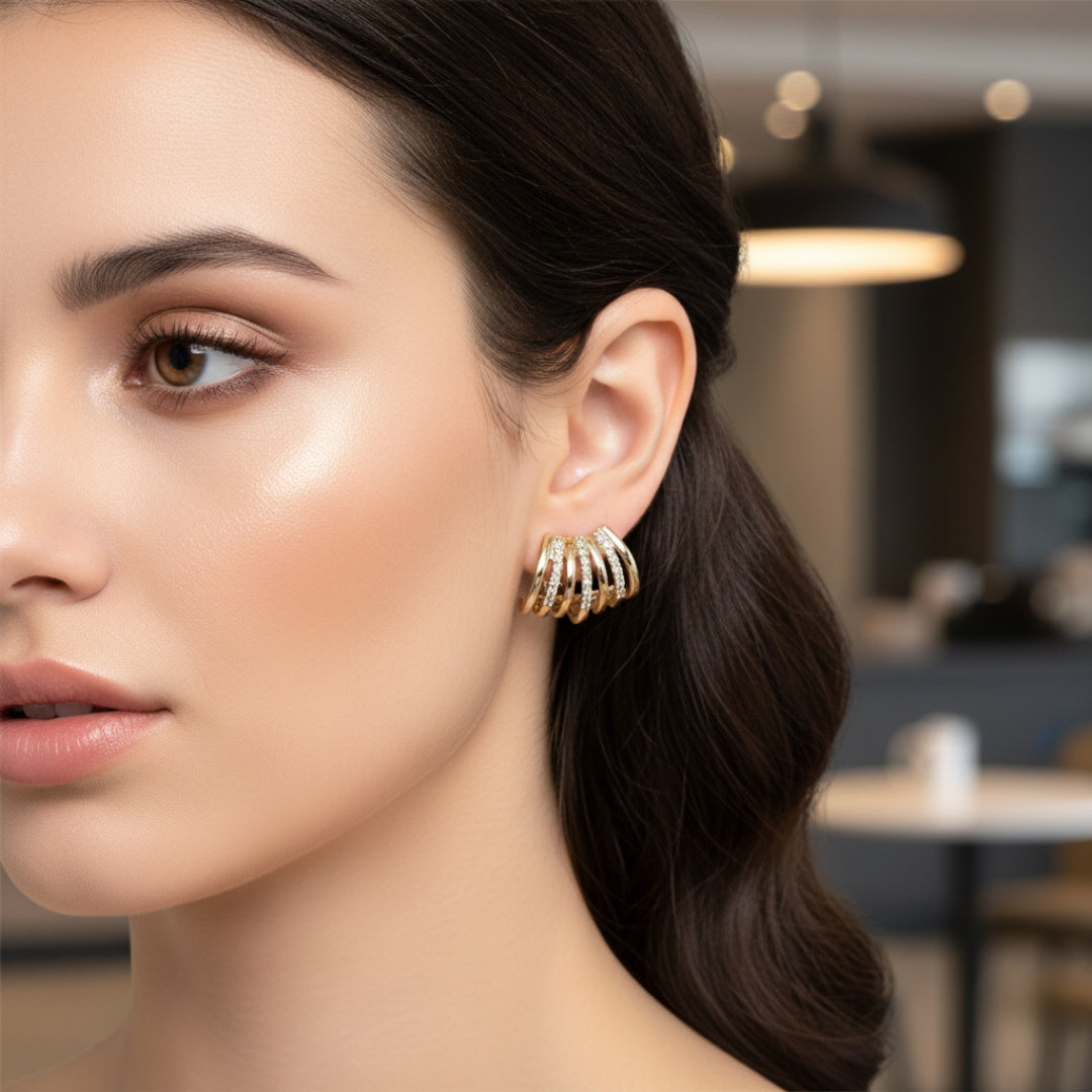 Elevate your everyday glamour with our Golden Wave Stud Earrings, a perfect blend of modern sophistication and timeless luxury. 💫 Designed with a unique wave-inspired structure and detailed with shimmering stones, these earrings reflect effortless elegance and refined style.