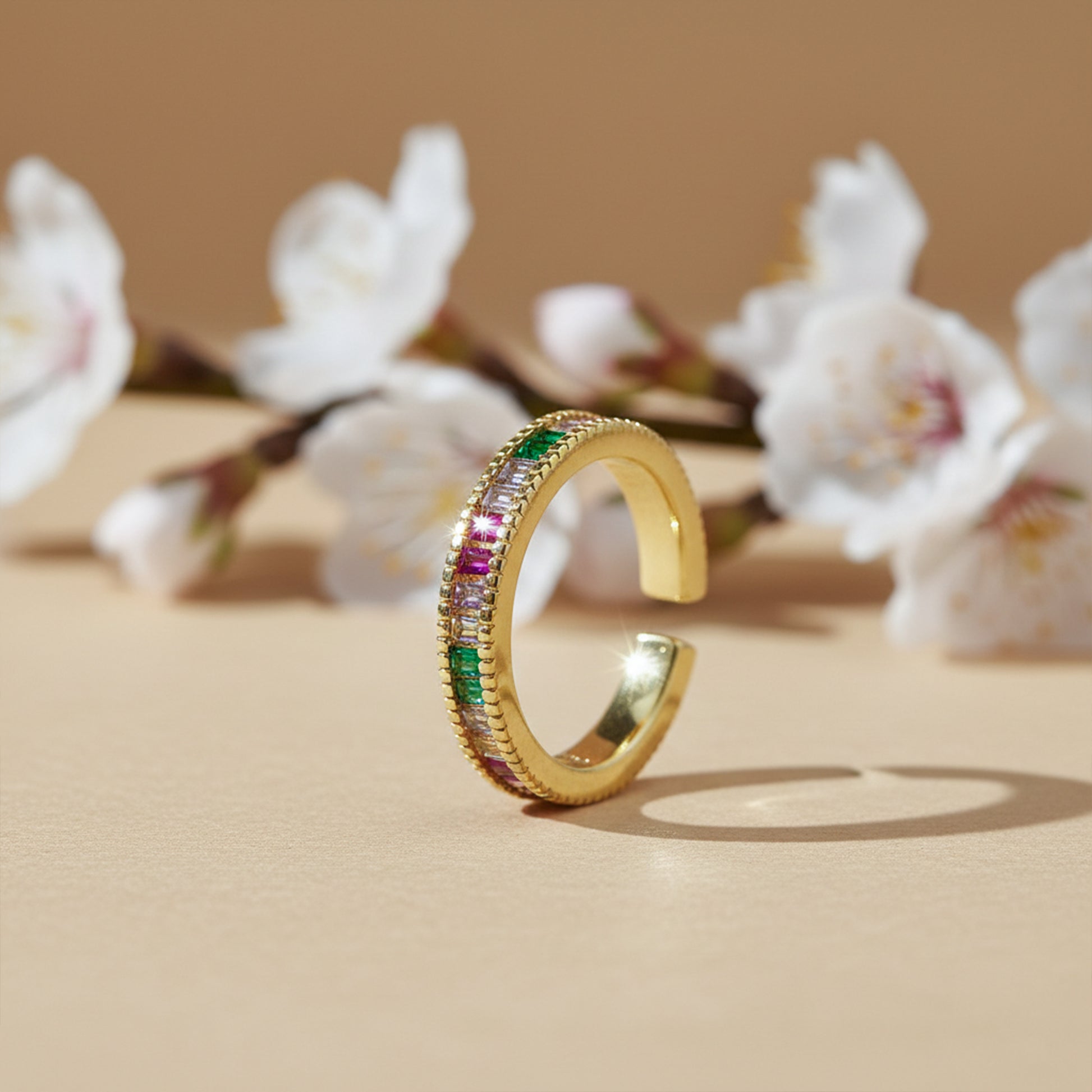 Whether worn as a statement piece or stacked with other rings, the Luxe Prism Crystal Ring brings luxury, color, and brilliance to your everyday look or special occasions.