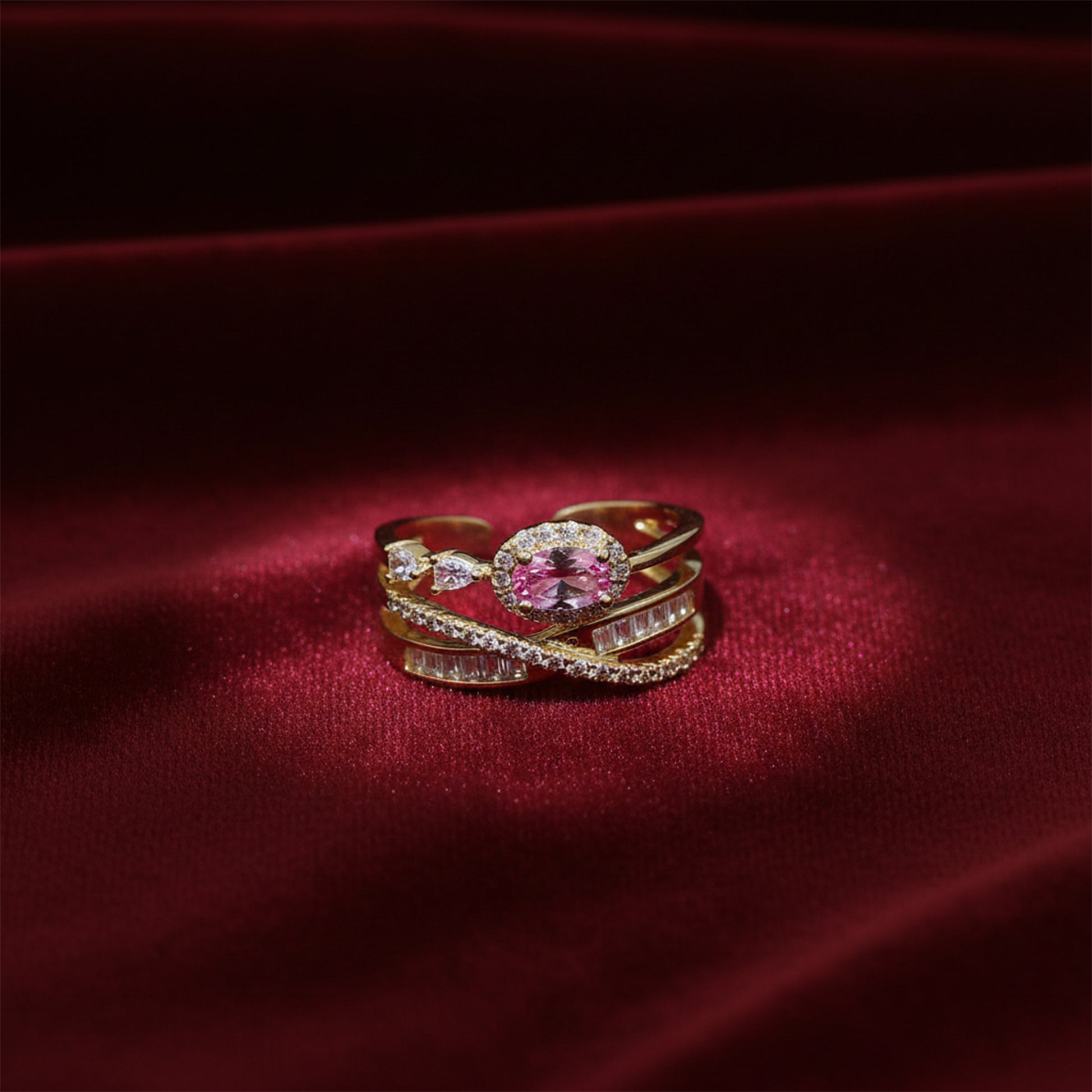 π Blush Royale Pink Diamond Criss-Cross Ring β Elegant Luxury with a Romantic Touch