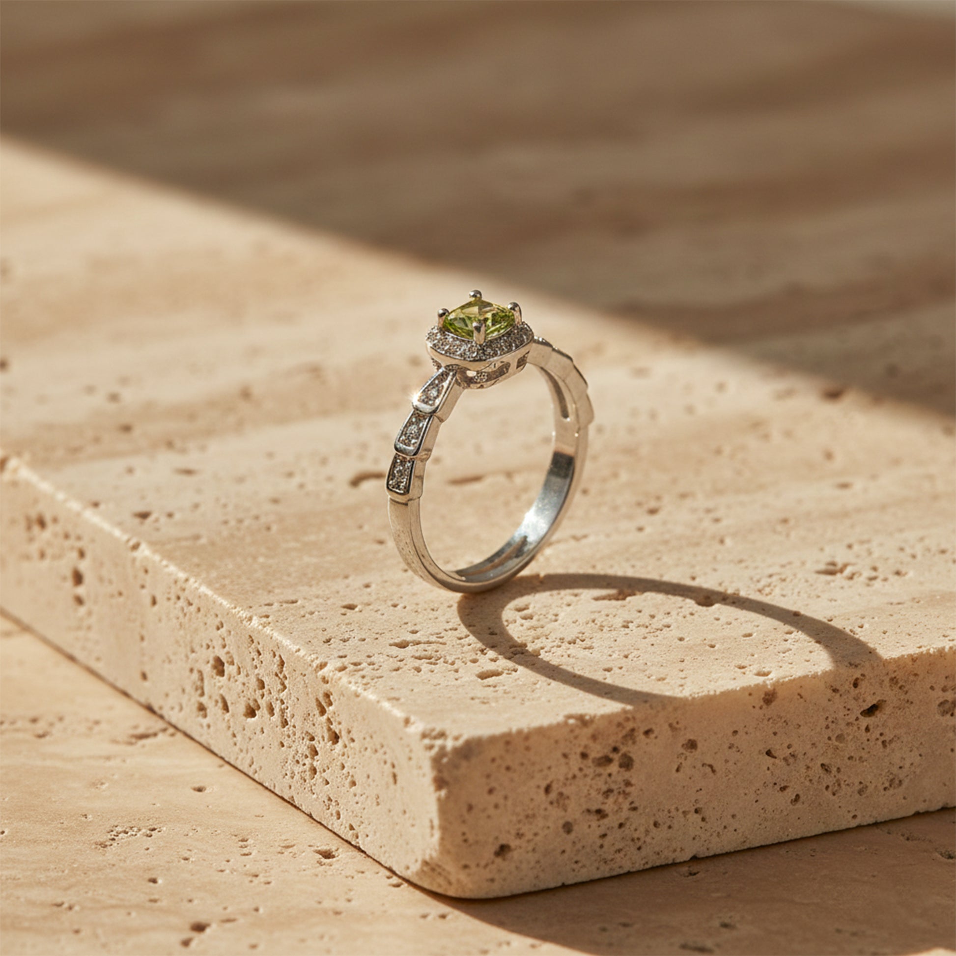 Add a touch of sophistication to your jewelry collection with the Elite Green Gemstone Halo Ring β where timeless beauty meets modern luxury.