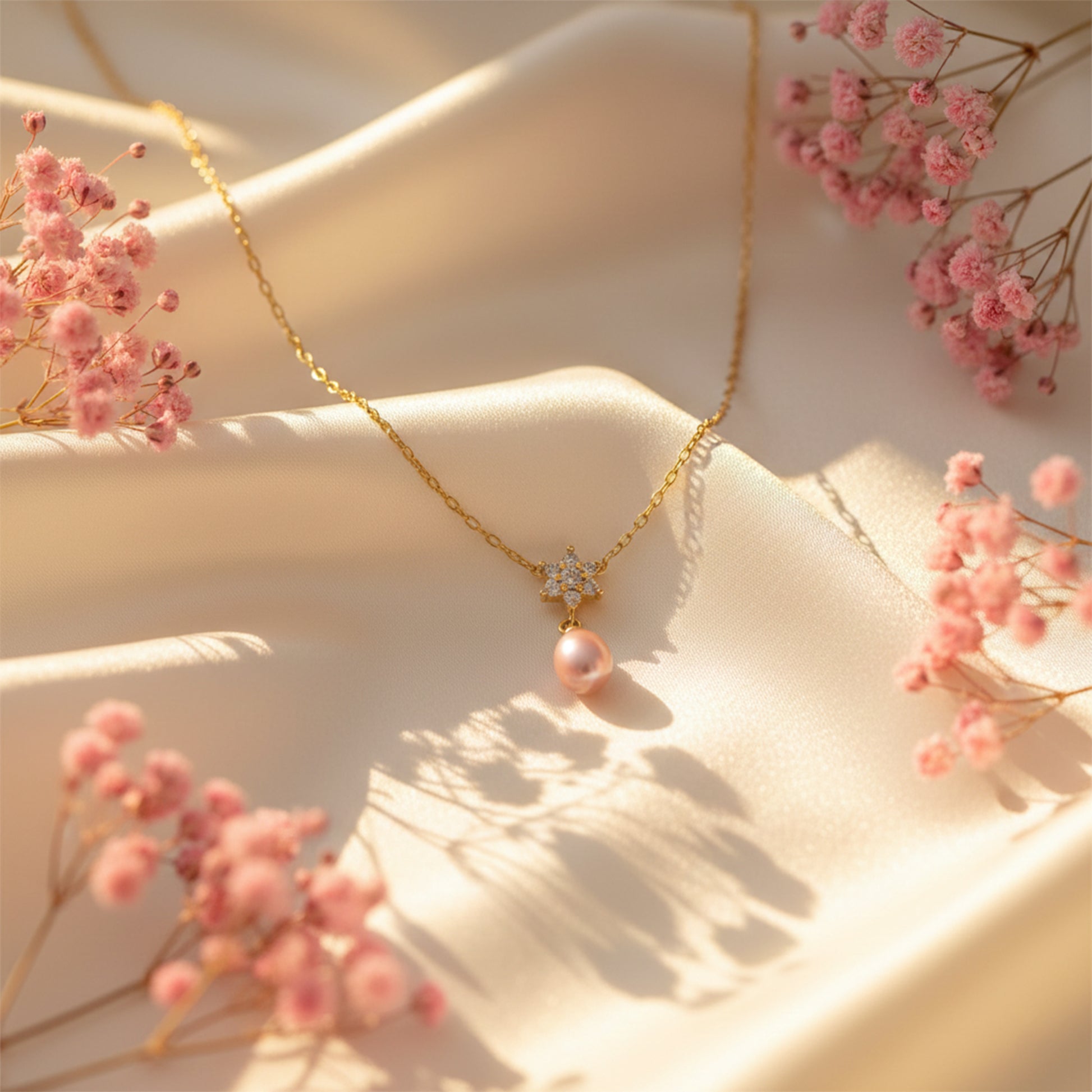 Floral Pink Pearl Drop Pendant Necklace