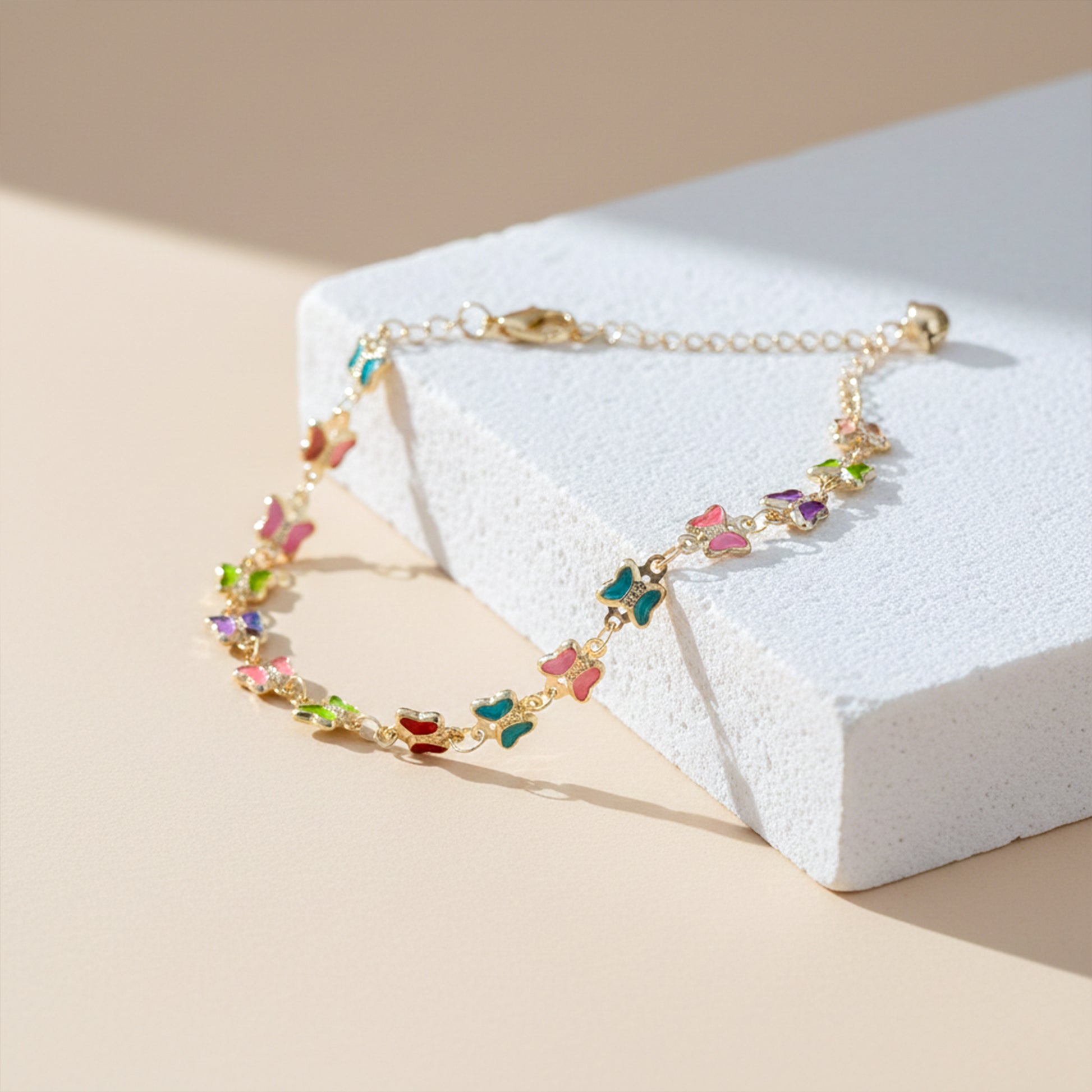 Luxe Multicolor Butterfly Charm Anklet – Graceful Colorful Elegance 🦋