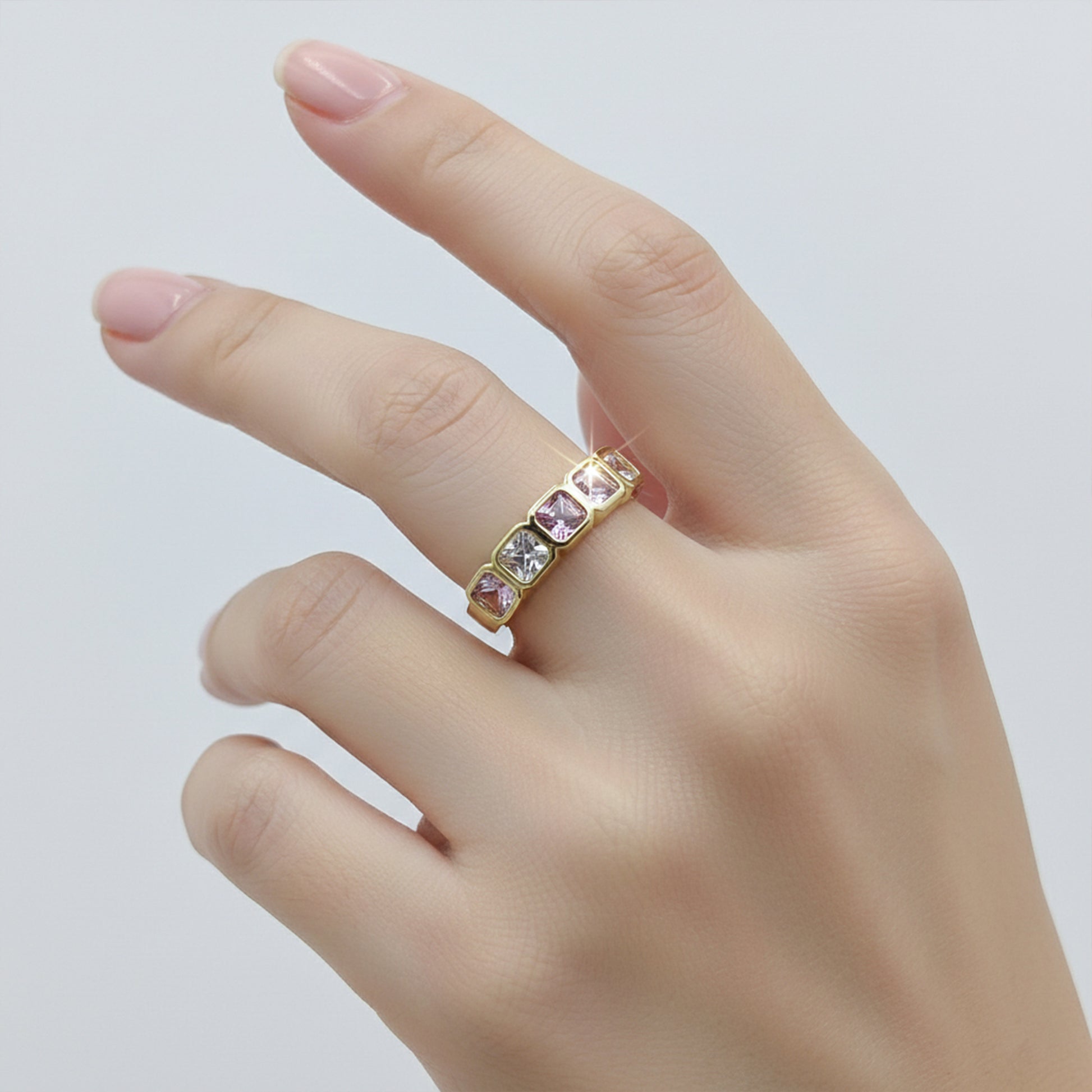 Luxe Princess Cut Eternity Gold Ring π