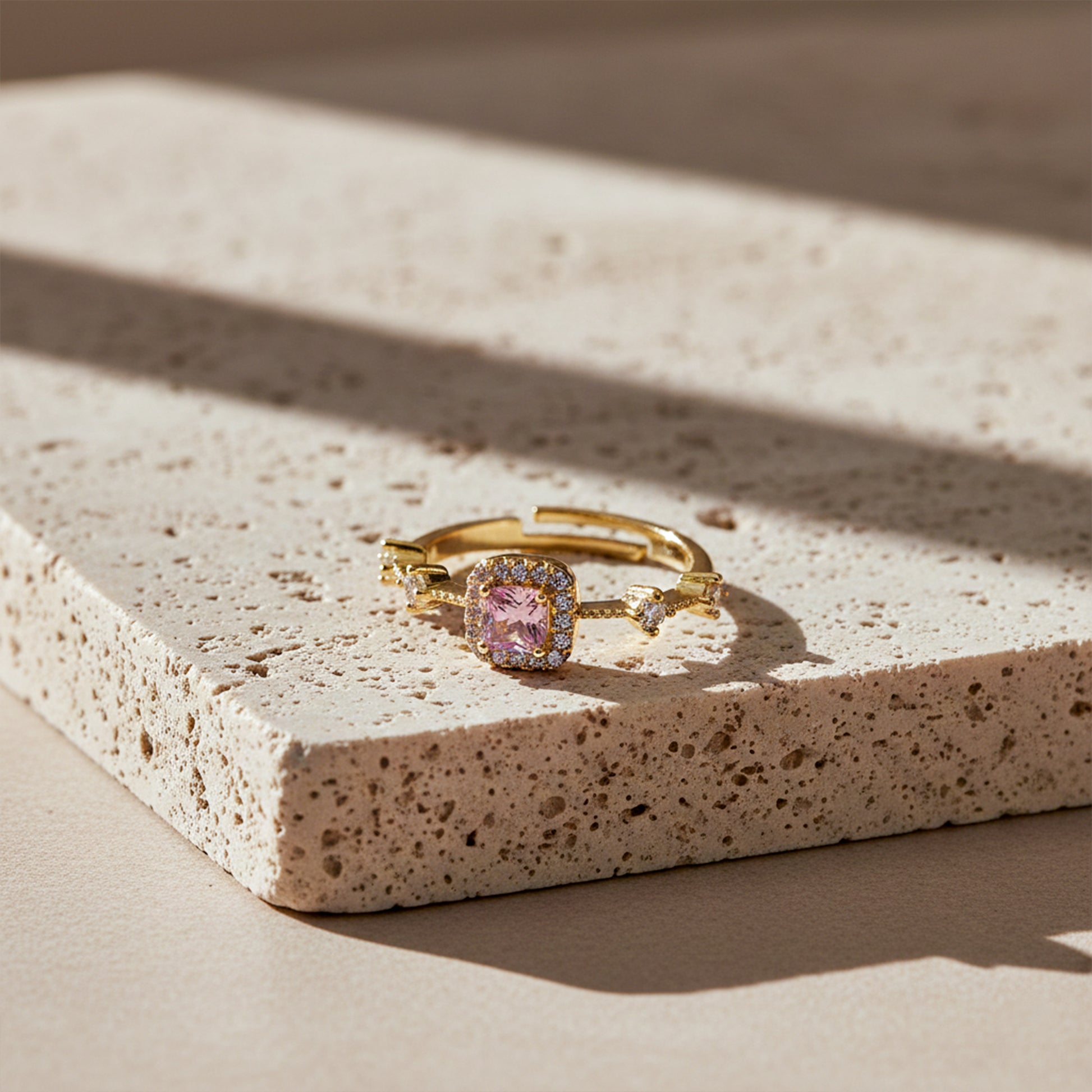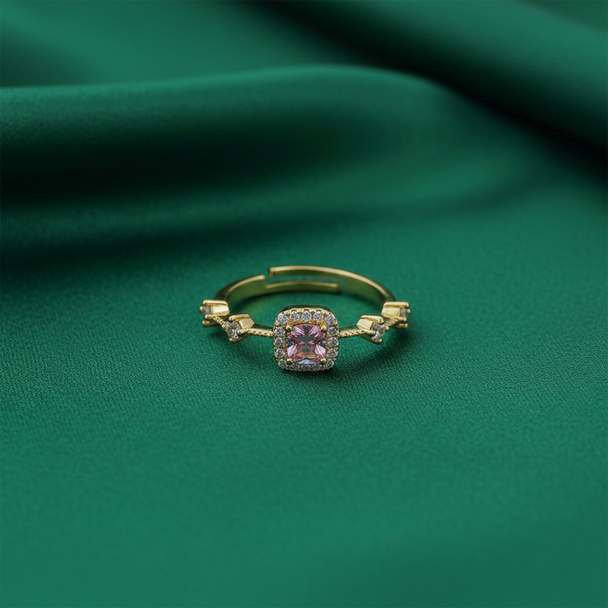 Majestic Pink Gemstone Halo Ring
