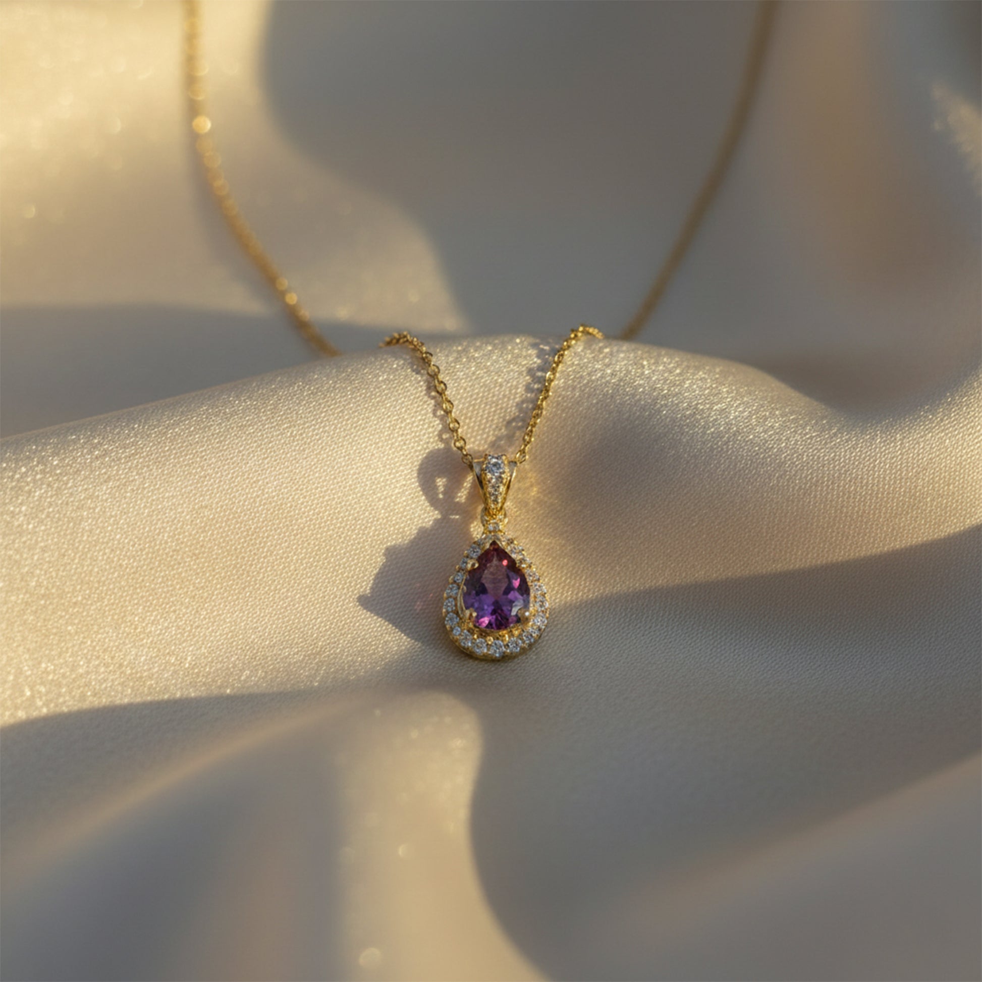 ✨~Purple Teardrop Gemstone Gold Pendant Necklace – Timeless Luxury & Elegance