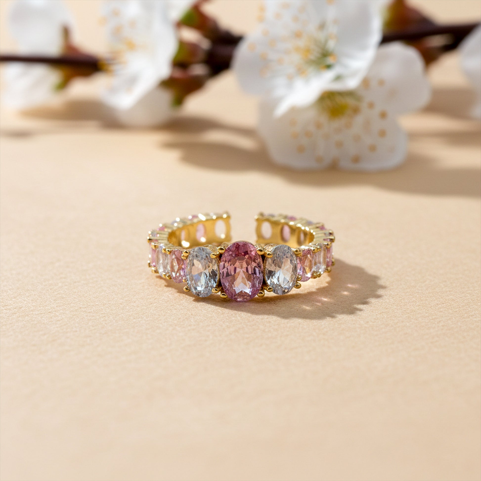 π Dazzling Multistone Design β Vibrant stones create a luxurious rainbow sparkle.