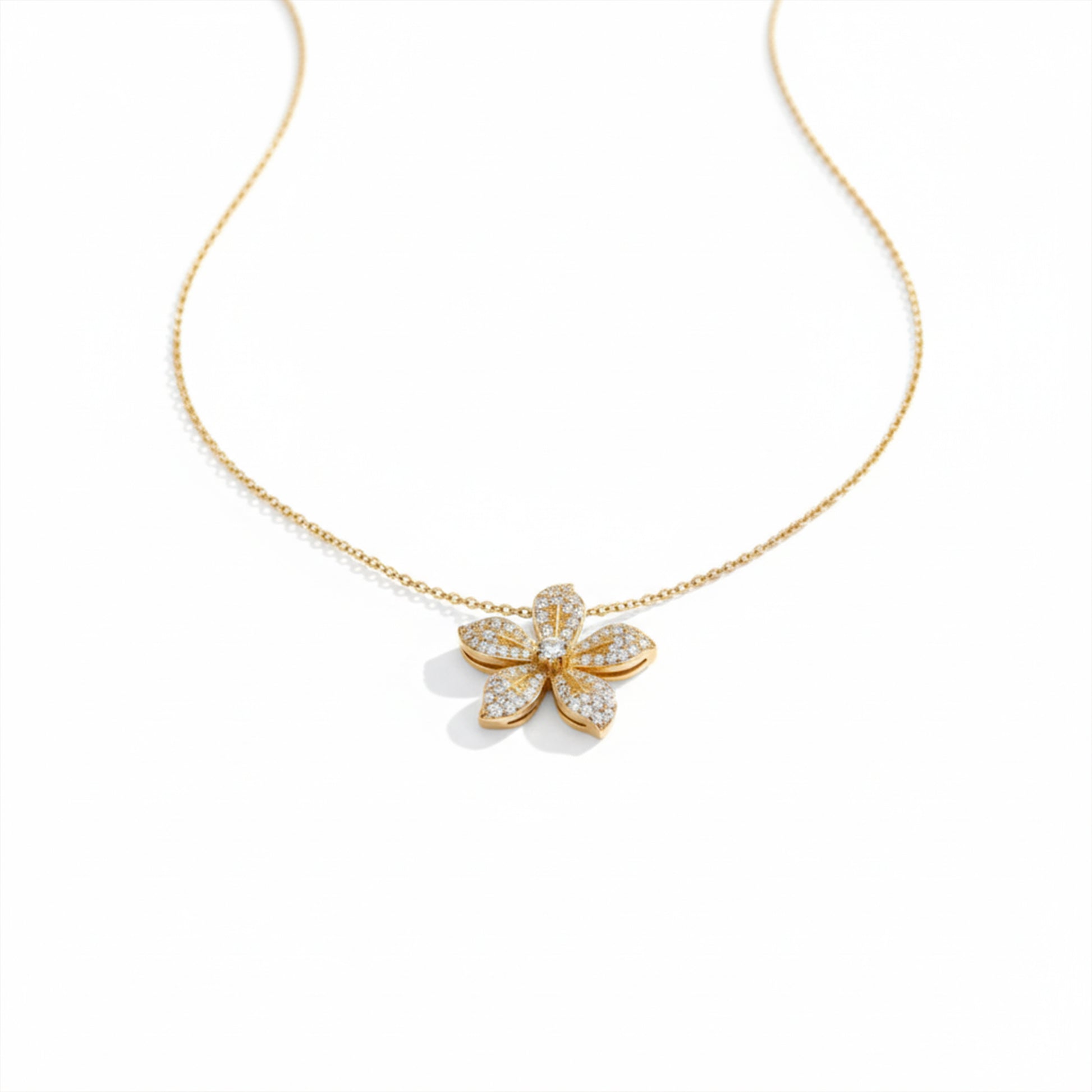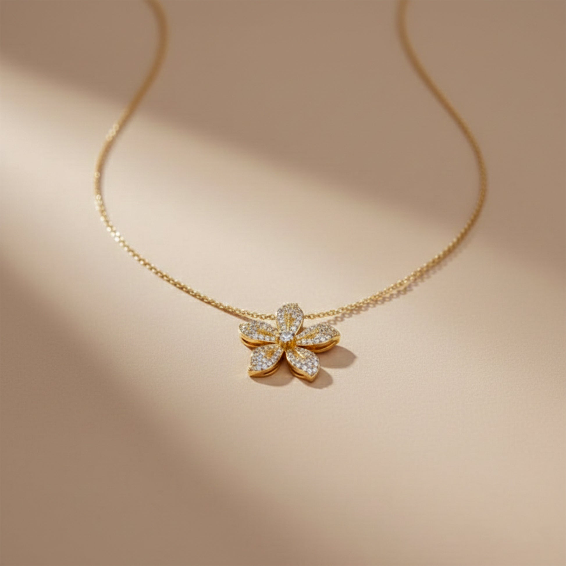 Add a touch of timeless beauty to your collection with this luxury floral gold necklace from Luxpenny. π Designed with a delicate gold chain and a sparkling flower pendant adorned with fine stone detailing, this piece radiates sophistication and feminine charm.