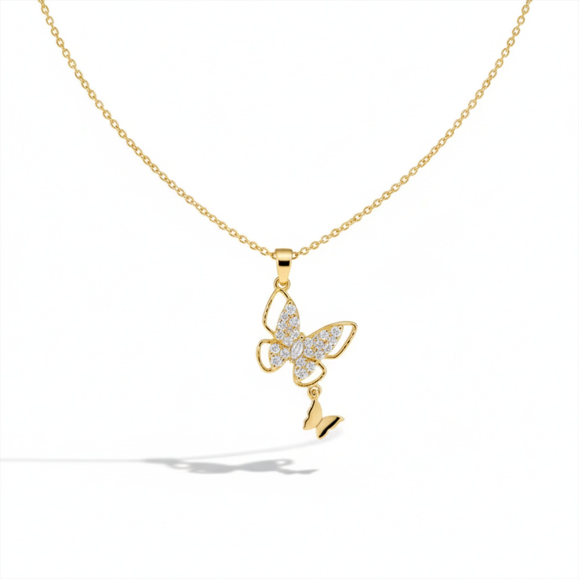 The elegant drop design adds graceful movement and brilliance, making it the perfect statement necklace for both everyday sophistication and special occasions. Whether you're dressing up for an evening event or elevating your daily look, this luxury butterfly necklace adds a radiant finishing touch. ✨